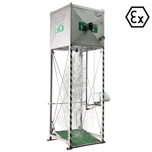 Bezpečnostní sprchy s temperovanou vodou v tlakové nádrži, EX |